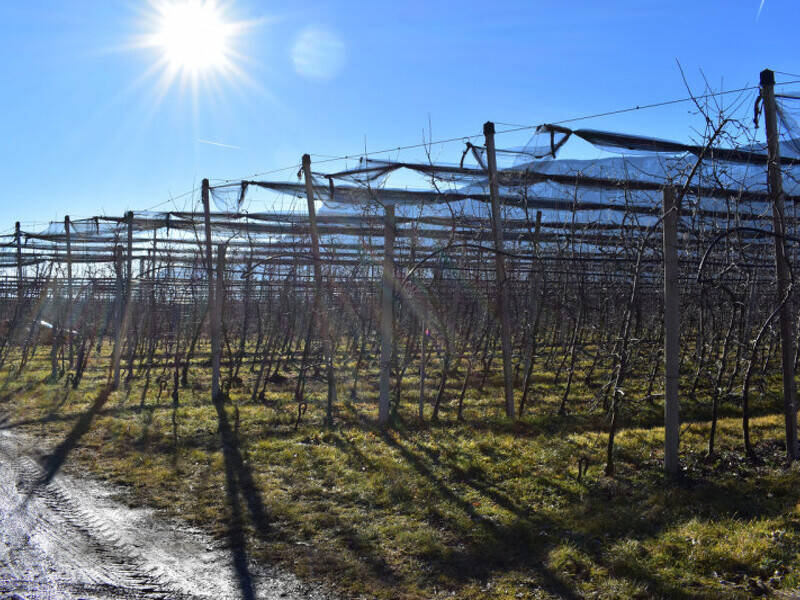 Le reti antigrandine mettono in sicurezza il terreno di 7 file lunghe ca. 200 m .